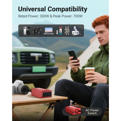 300W Car Power Inverter - YSOLX Dual DC 12V to 110V AC Car Outlet Adapter to Wall Plug, 24W Fast Charging USB-C&USB-A, Portable Charger Converter with for Laptops, Phones